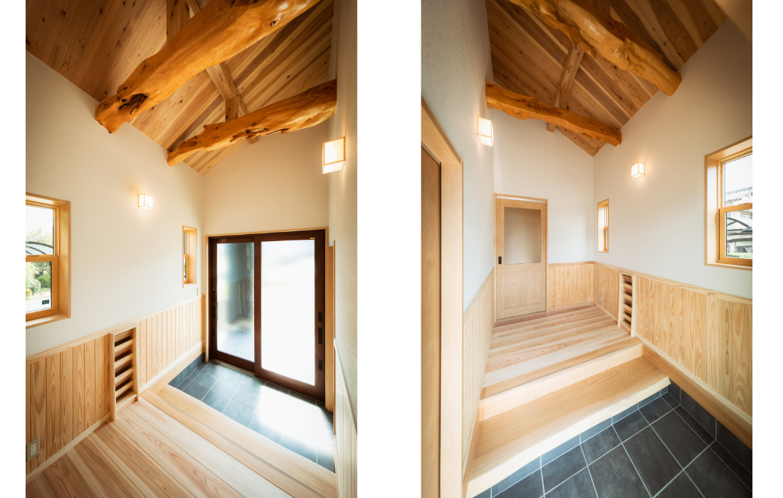 ご家族が実家で慣れ親しんだ杉の無垢材を、LDKと玄関ホールに採用しました。