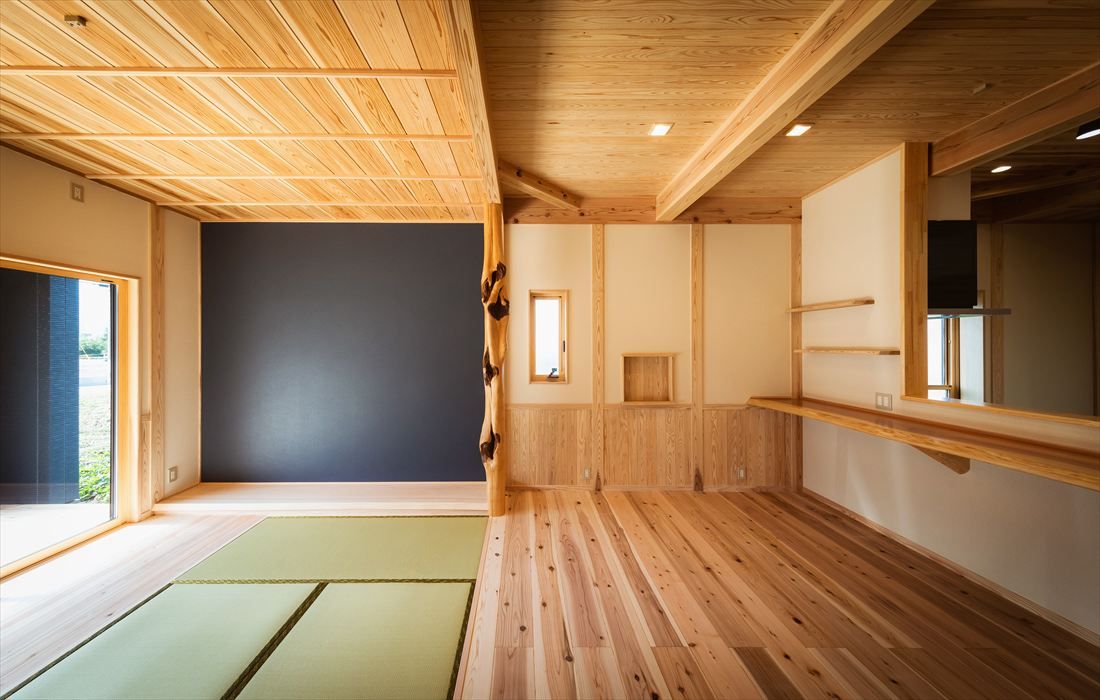 杉のぬくもりに包まれて暮らす平屋の住まい