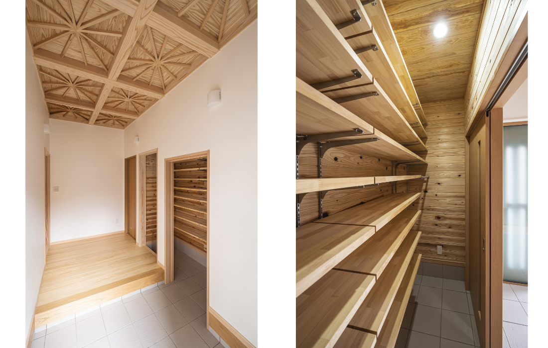 木組みの力強さとのバランスが美しく、温もりと優しさを感じるデザインです。