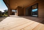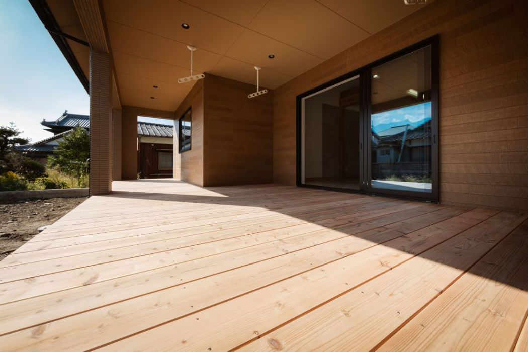 子どもの遊び場や洗濯干しスペースとして活躍するウッドデッキ。